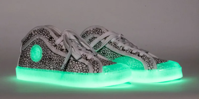 Uma sapatilha com fundo branco e um padrão de linhas retas negras - reminiscente da arte da calçada portuguesa, um dos traços mais típicos da cultura portuguesa - e que brilha no escuro, é fruto da criatividade de uma equipa de cinco alunos do IADE, vencedores do desafio criativo que a SANJO lançou aos estudantes das licenciaturas de Design, Marketing e Publicidade, Fotografia e Cultura Visual e Ciências da Comunicação, no início do ano.