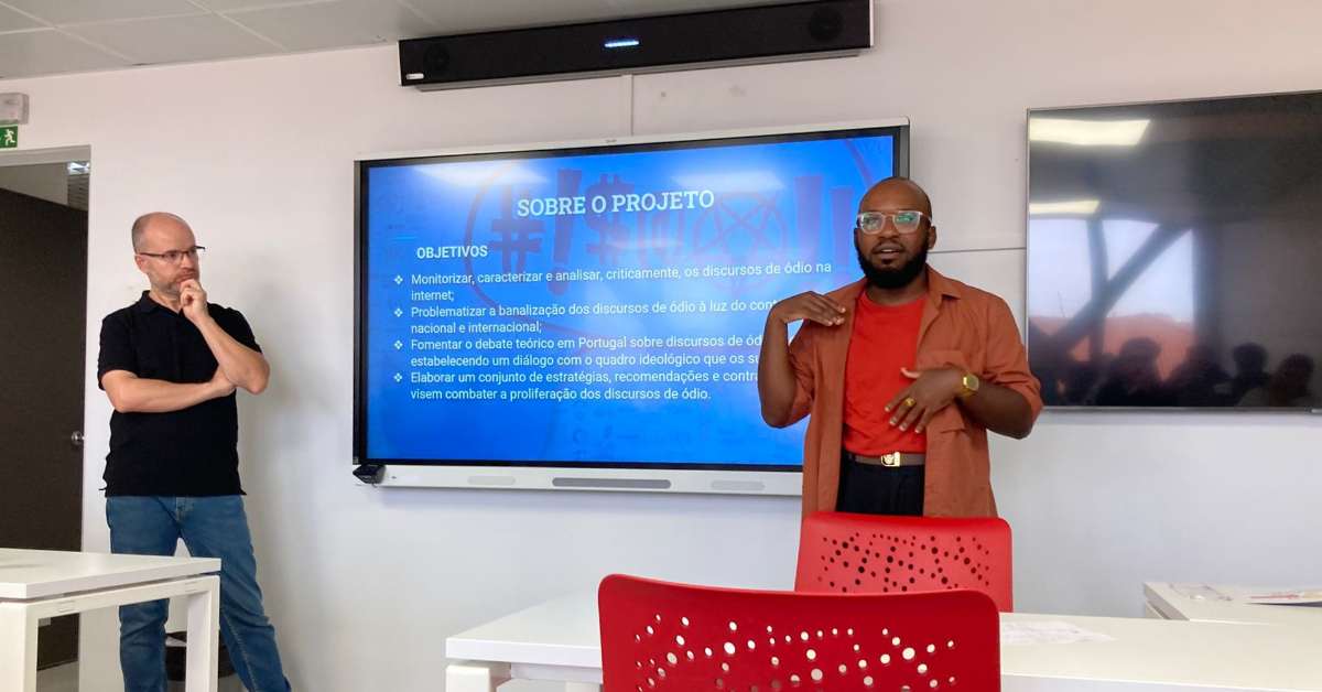 On the 11th of October, the 3rd year classes of IADE's Degree in Communication Sciences received the visit of Pedro Almeida and Diego Candido, members of the research team of the project "Racismo e Xenofobia em Portugal: a normalização dos discursos de ódio no espaço público da internet".