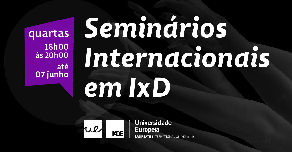 Desenvolvido no âmbito do Mestrado em Design de Interação promovido pelo IADE-Universidade Europeia, este ciclo de seminários dirige-se a alunos, professores e profissionais do sector do design. Reunindo oradores nacionais e internacionais de referência, do meio académico e profissional, os seminários irão abordar temas relacionados com a investigação e a inovação na área do IxD, com o objetivo de ajudar a estimular o talento dos alunos e a aproximá-los da realidade empresarial. A Computação Fisiológica, o Ergodesign, Televisão interativa, IoT, UX, o Design de robots sociais, a realidade virtual e aumentada serão alguns dos temas a abordar nos diferentes encontros. O ciclo de seminários internacionais em IxD reforça o contributo do IADE-Universidade Europeia enquanto laboratório de criatividade e decorre todas as quartas-feiras, entre as 18h e as 20h, até 7 de junho.